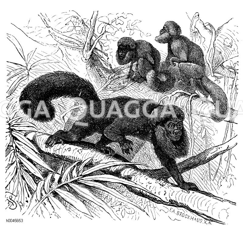 Satansaffe: Zeichnung/Illustration/Holzstich – Pithecia satanas – –