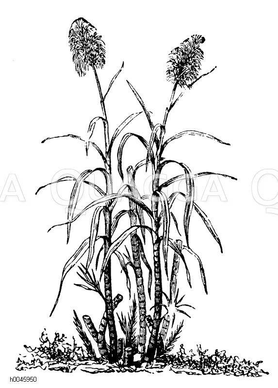 Zuckerrohr: Zeichnung/Illustration/Holzstich – Saccharum officinarum – Sugarcane –