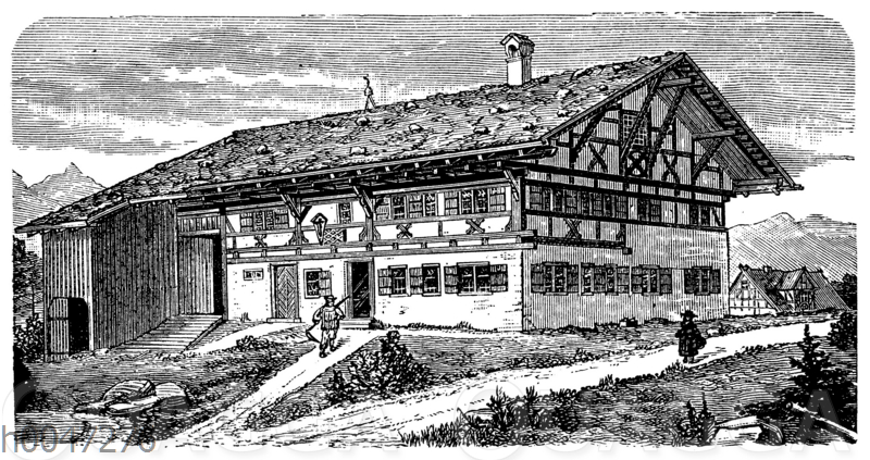 Bauernhaus im Allgäu: Zeichnung/Illustration/Holzstich – – Farmhouse in Allgäu – Ferme dans l’Allgäu