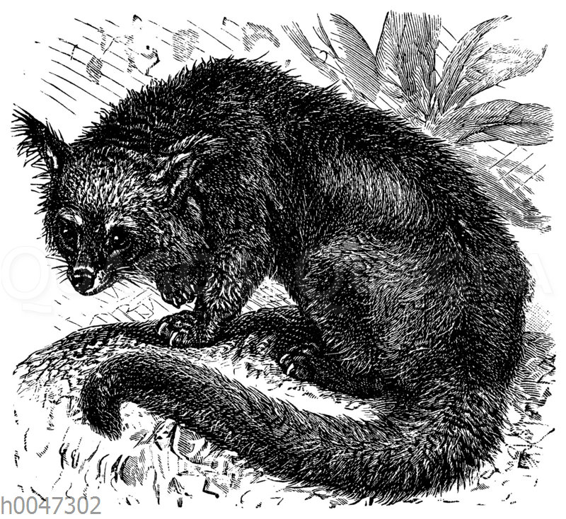 Marderbär, Binturong: Zeichnung/Illustration/Holzstich – – –
