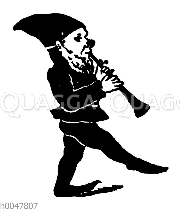 Vignette: Zwerg mit Flöte: Zeichnung/Illustration/ – – –