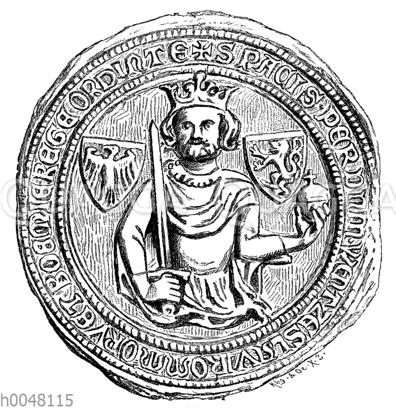 Landfriedenssiegel König Wenzels: Zeichnung/Illustration/Holzstich – – Land peace seal of King Wenceslas (Wenceslas of Luxembourg, 1361-1419) –