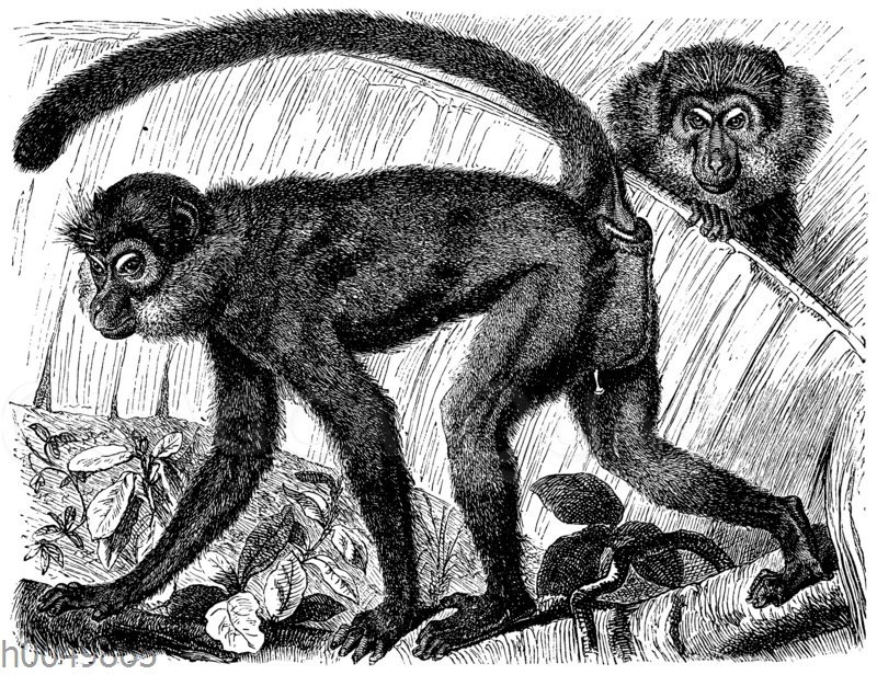 Rußfarbene Meerkatze: Zeichnung/Illustration/Holzstich – – –