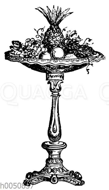 Tafelaufsatz mit Ananas und anderen Früchten: Zeichnung/Illustration/Holzstich – – –