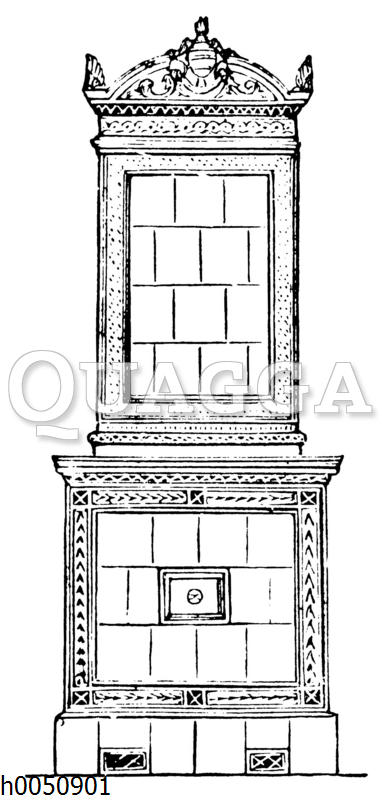 Berlin Ofen, Kachelofen: Zeichnung/Illustration/Holzstich – – –
