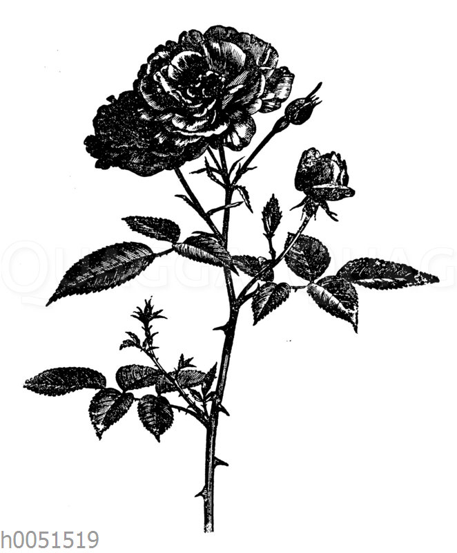 Monatsrose: Zeichnung/Illustration/Holzstich – – –
