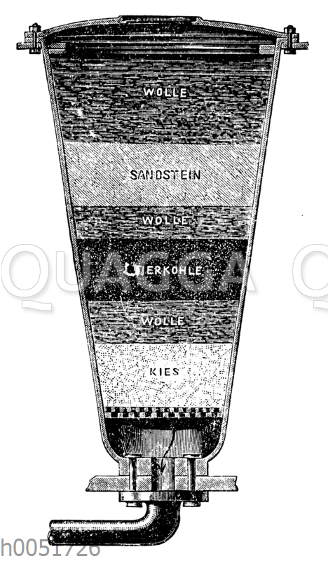Hausfilter zur Wasserreinigung: Zeichnung/Illustration/Holzstich – – –