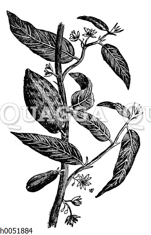 Kakaobaum: Zweig: Zeichnung/Illustration/Holzstich – Theobroma cacao – –