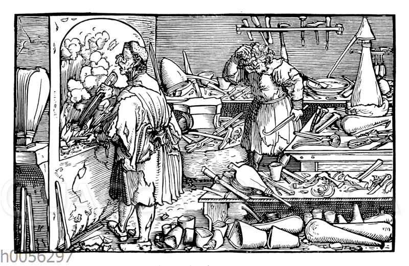 Alchemistisches Laboratoirum: Zeichnung/Illustration/Holzstich – – –