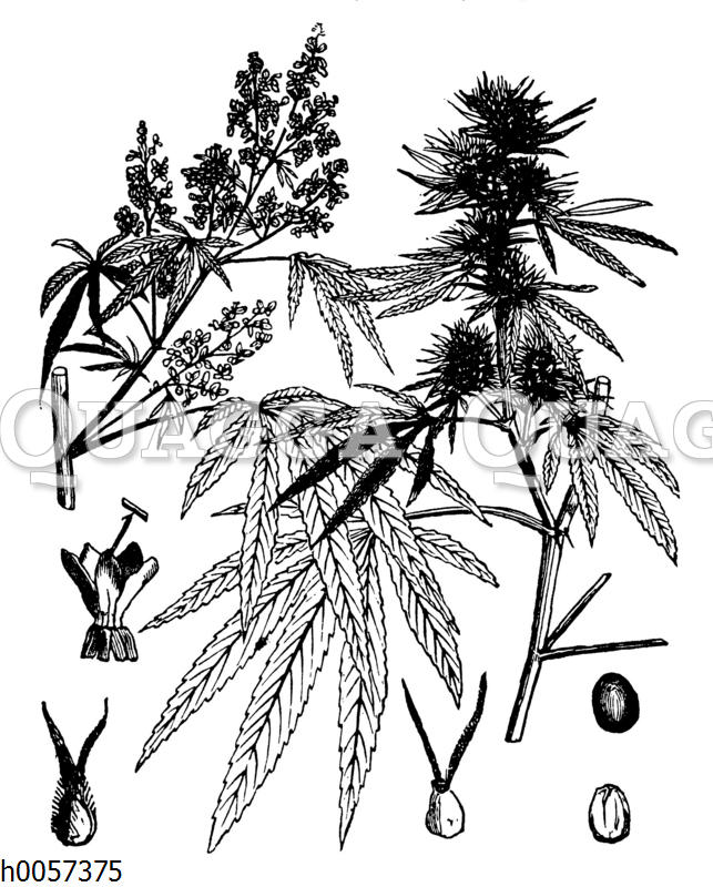 Hanf: Zeichnung/Illustration/Holzstich – Cannabis sativa – Hemp