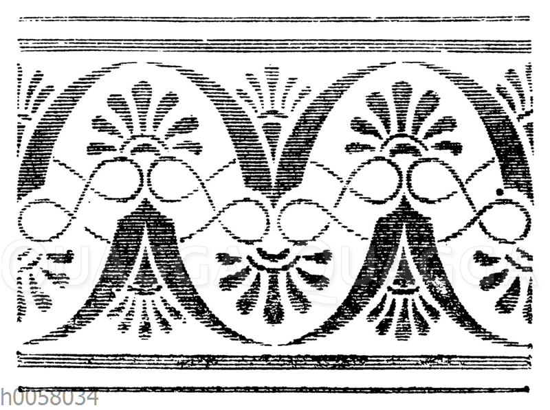 Bandornament: Zeichnung/Illustration/Holzstich – – –
