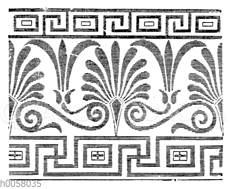 Bandornament: Zeichnung/Illustration/Holzstich – – –