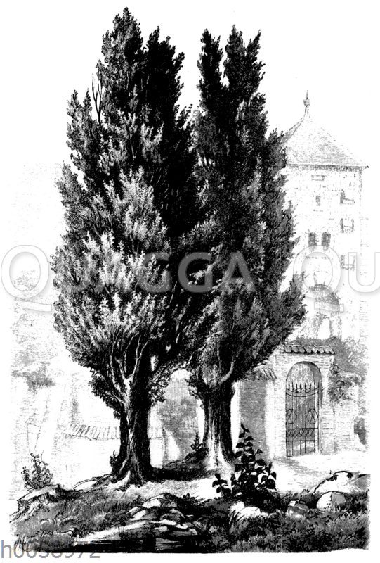 Pyramidenpappel: Zeichnung/Illustration/Holzstich – Populus nigra ‚Italica‘ – –