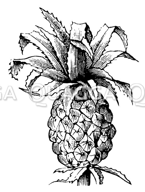 Ananas: Frucht: Zeichnung/Illustration/Holzstich – Ananas comosus syn. Bromelia ananas syn. Ananas sativus – Pineapple – Ananas