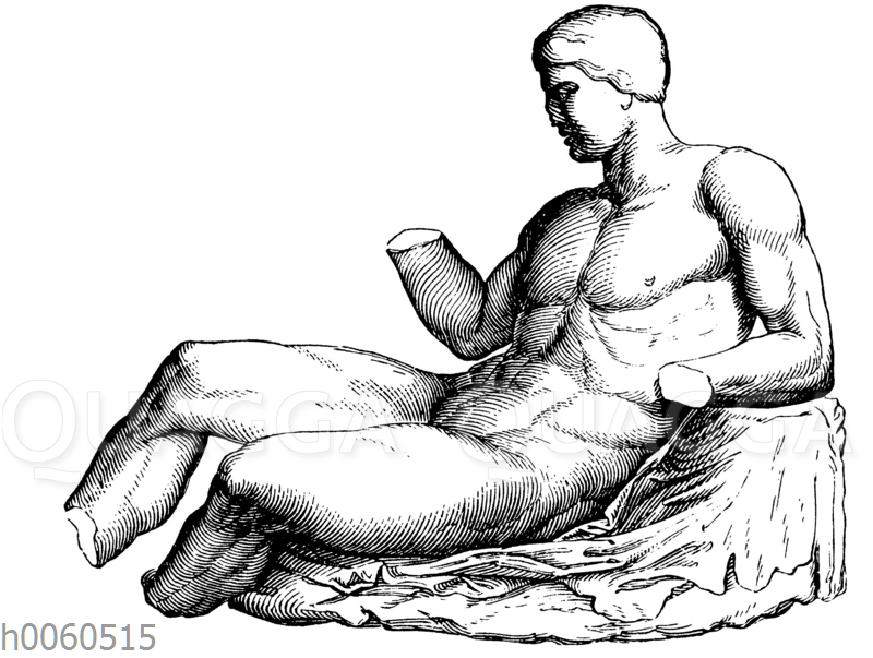 Dionysos (?) aus dem Ostgiebel des Parthenon.London, Brit. Museum.: Zeichnung/Illustration/Holzstich – – –