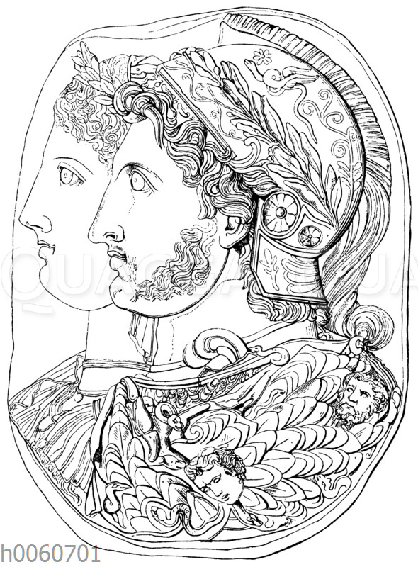 Cameo Gonzaga. (Ptolemaeos I. und seine Gemahlin Eurydike.): Zeichnung/Illustration/Holzstich – – –