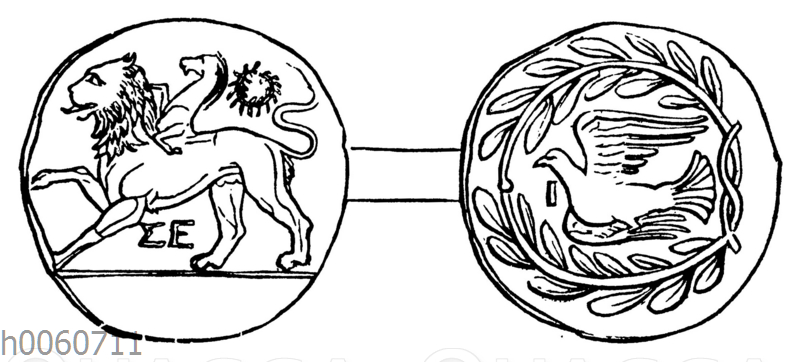 Münze von Sikyon: Zeichnung/Illustration/Holzstich – – –