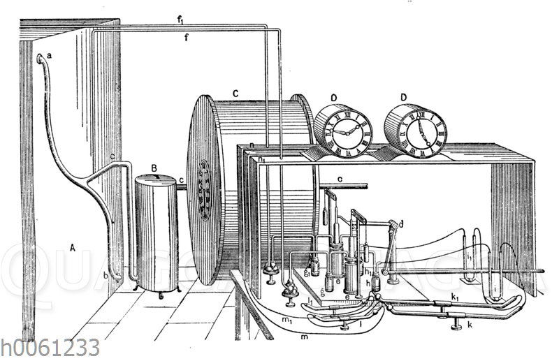 Pettenkofers Respirationsapparat: Zeichnung/Illustration/Holzstich – – –
