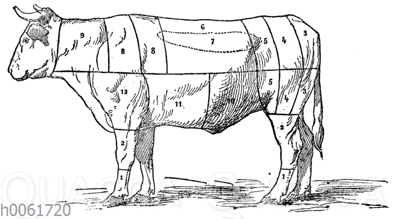 Fleischeinteilung beim Rind: Zeichnung/Illustration/ – – –