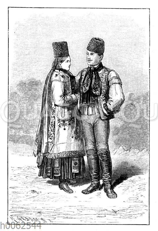 Siebenbürger Sachsen, Brautpaar: Zeichnung/Illustration/Holzstich – – Transylvanian Saxons, bridal couple –