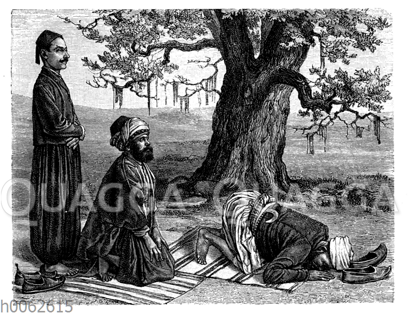 Betende Araber: Zeichnung/Illustration/Holzstich – – –