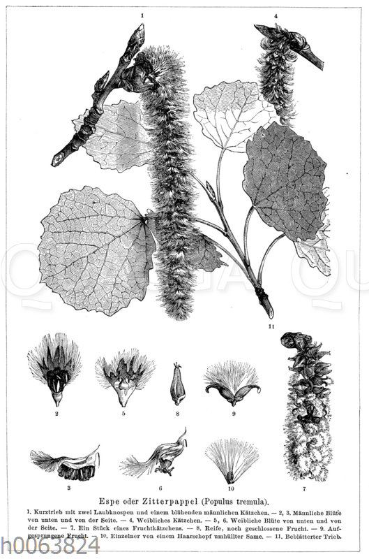 Espe oder Zitterpappel: Zeichnung/Illustration/Holzstich – Populus tremula – aspen – tremble
