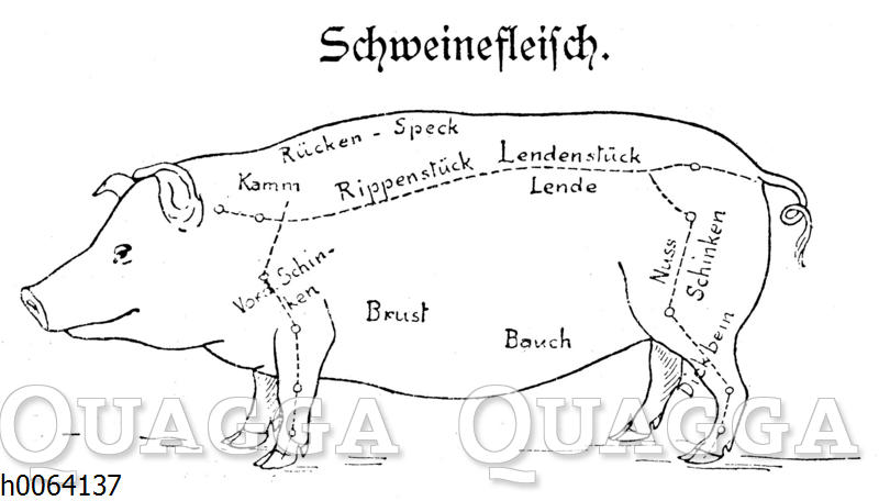Fleischeinteilung beim Schwein: Zeichnung/Illustration/ – – –
