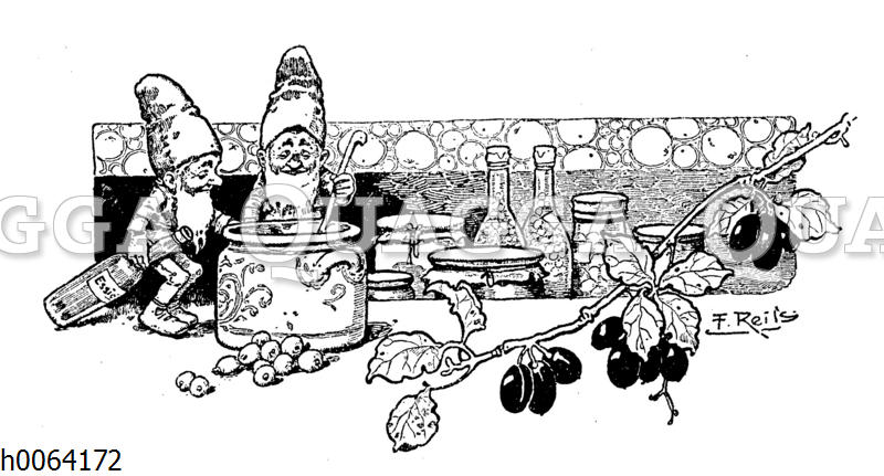 Kochbuchvignette: Marmeladen und Essig: Zeichnung/Illustration/ – – –
