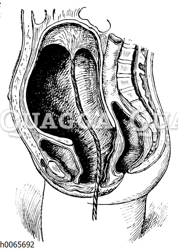 Gebärmutter unmittelbar nach der Geburt: Zeichnung/Illustration/Holzstich – – –