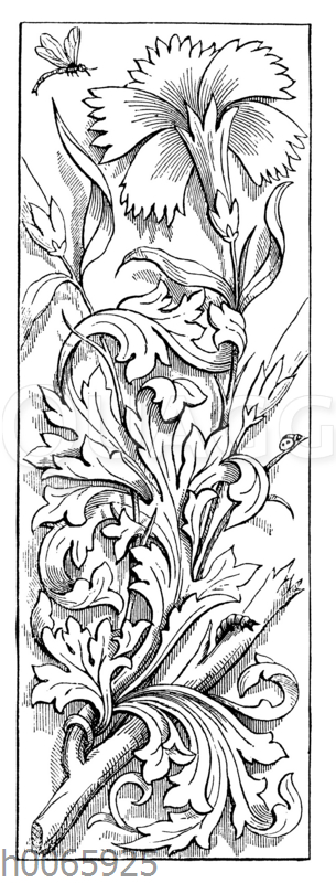 Nelkenornament: Zeichnung/Illustration/Holzstich – – –