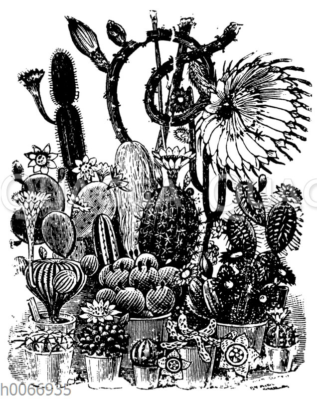 Kakteensammlung: Zeichnung/Illustration/Holzstich – – cactus collection – collection de cactus