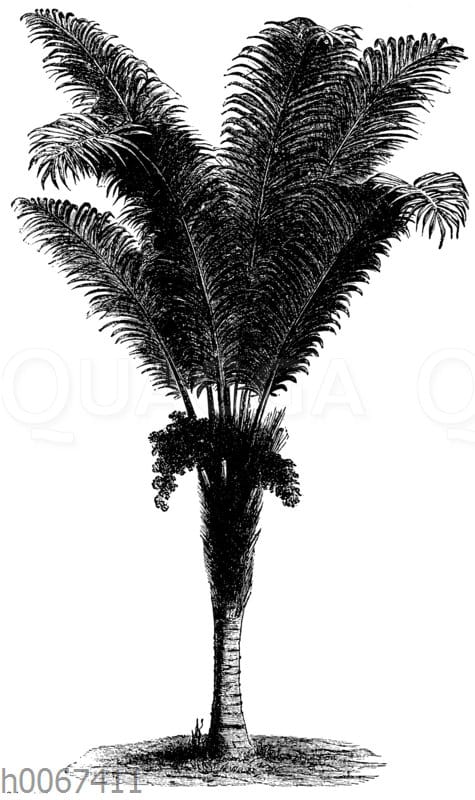 Weinpalme: Zeichnung/Illustration/Holzstich – Raphia vinifera – West African piassava palm – Raphia vinifera