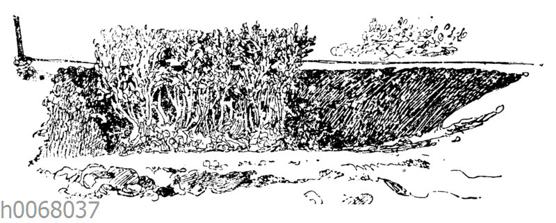 Pflanzen des Buchsbaums als Einfassung: Zeichnung/Illustration/Holzstich – Buxus sempervirens – –