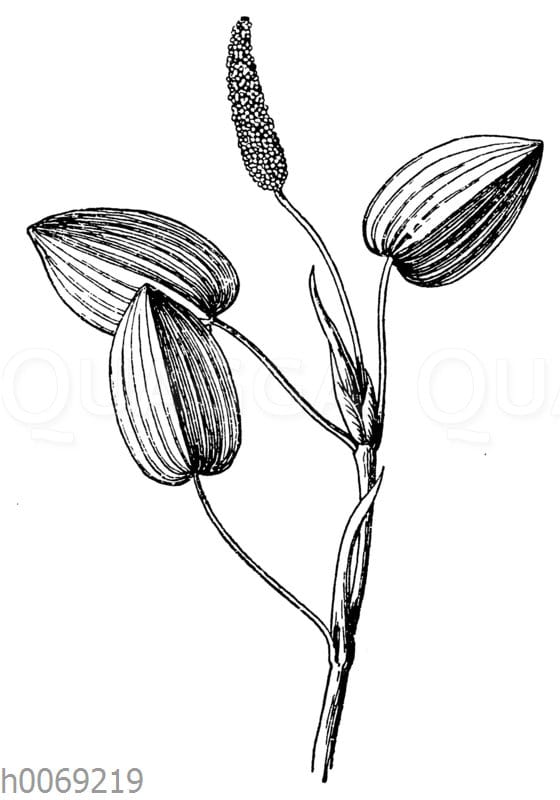 Schwimmendes Laichkraut: Zeichnung/Illustration/Holzstich – – –