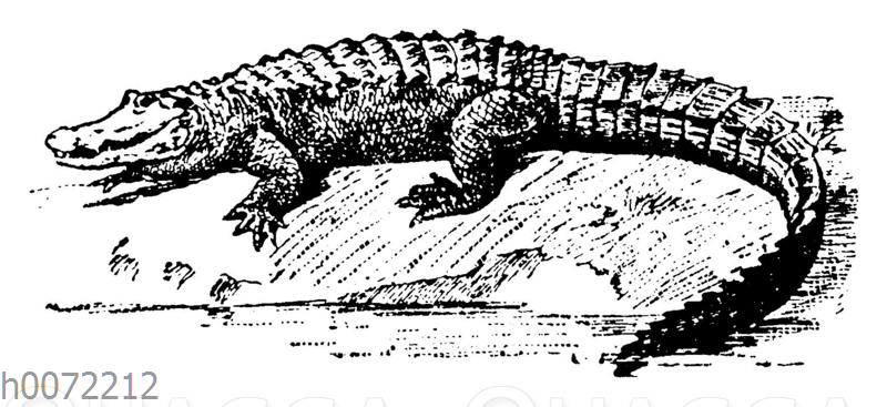 Kaiman: Zeichnung/Illustration/Holzstich – – –