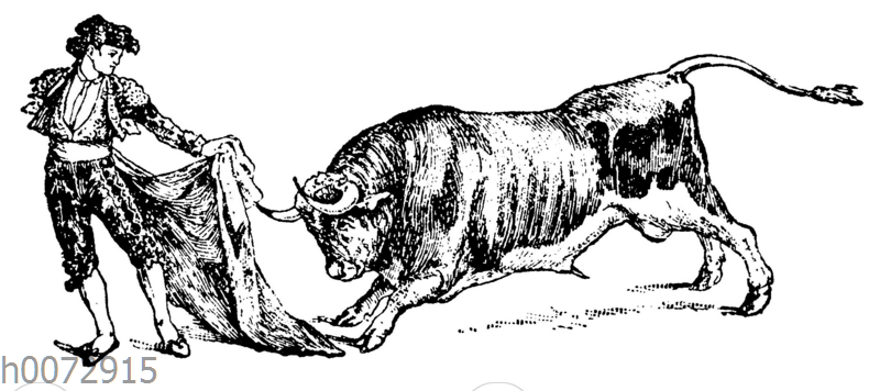 Torero mit Stier: Zeichnung/Illustration/Holzstich – – –