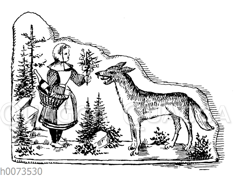 Grimm’s Fairytales; Household Tales; sneaky; Children’s fairy tales; The brothers Grimm; Paul Meyer home; Little Red Riding Hood; Return; Wolf; wolves; Grimm brothers; Grimm; Girl; Fairy tale; naive; Greenness; Innocence; innocent; seduction,
