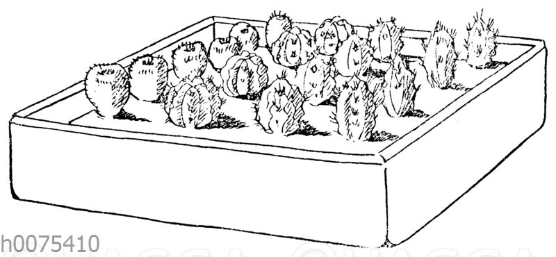 Viereckige Samenschale: Zeichnung/Illustration/Holzstich – – –