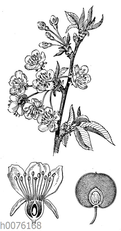 Sauerkirsche: Zeichnung/Illustration/Holzstich – Prunus cerasus – –