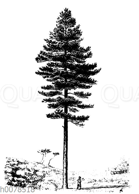 Schwarzkiefer: Zeichnung/Illustration/Holzstich – Pinus nigra – Austrian pine or black pine (Pinus nigra) – Pin noir (Pinus nigra)