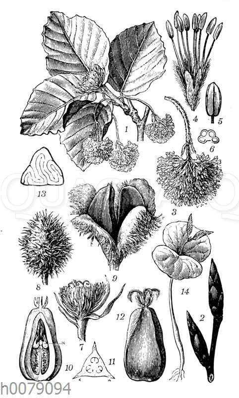 Rotbuche: Zeichnung/Illustration/Holzstich – Fagus sylvatica – –