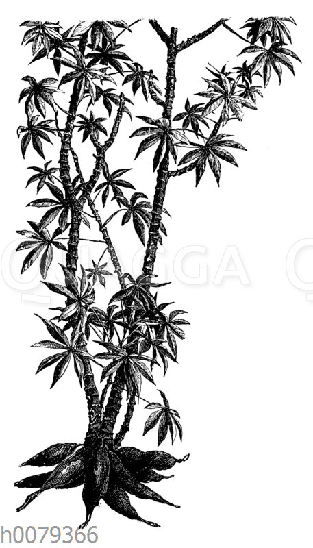 Maniok: Zeichnung/Illustration/Holzstich – Manihot esculenta – cassava – manioc