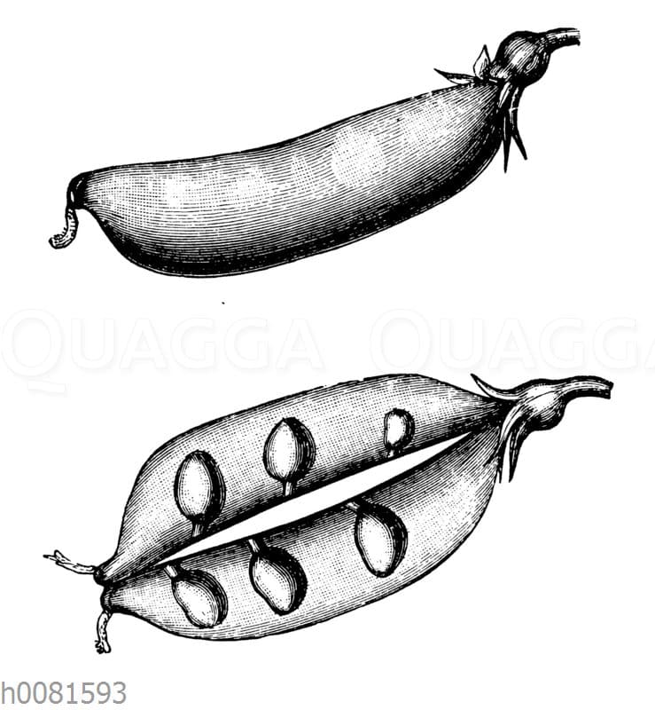 Erbse: Zeichnung/Illustration/Holzstich – Pisum sativum – Pea – Pois cultivé