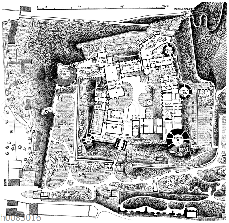 Castle; Heidelberg; Heidelberg Castle; Plan; Map, château; Heidelberg; château de Heidelberg; plan; carte; carte géographique