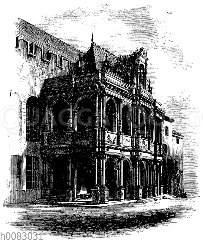 Vorhalle des Kölner Rathauses: Zeichnung/Illustration/Holzstich – – –