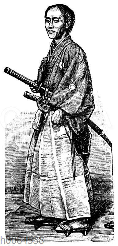Japaner in älterer Tracht: Zeichnung/Illustration/Holzstich – – –