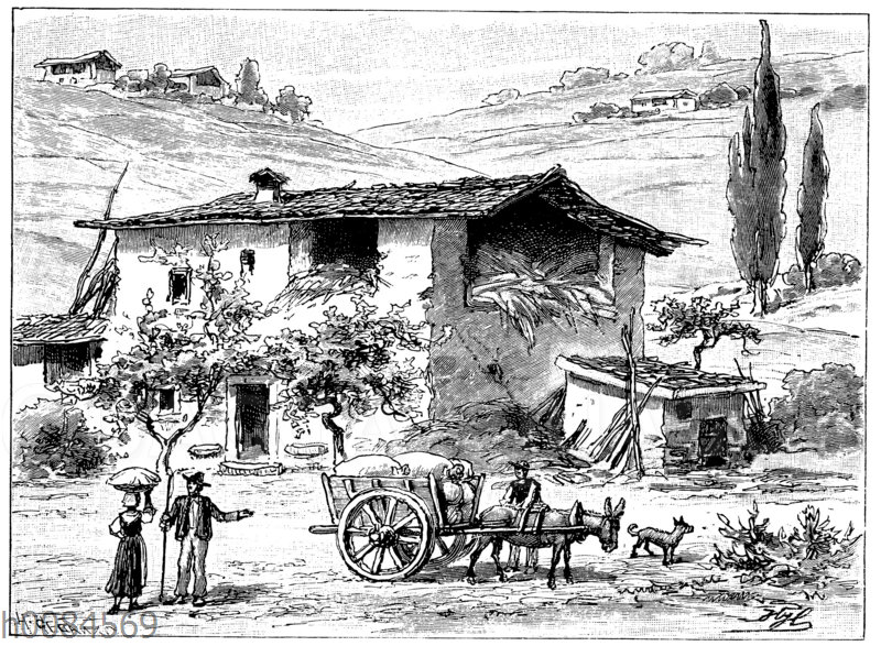 Oberitalienisches Bauernhaus: Zeichnung/Illustration/Holzstich – – –